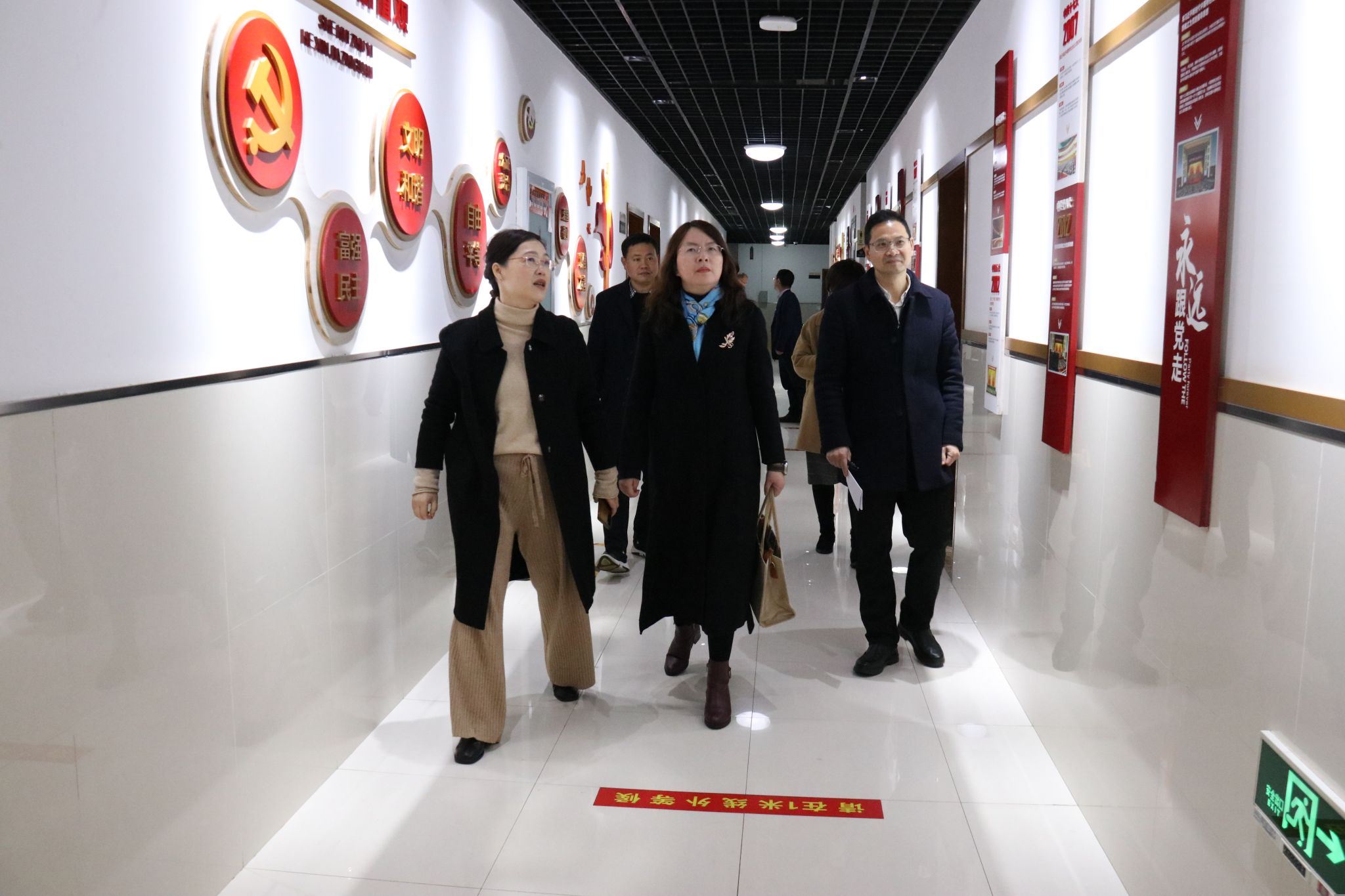 调研期间,章红波一行实地走访观摩了学院党建文化长廊、党群服务中心与心理咨询中心等。