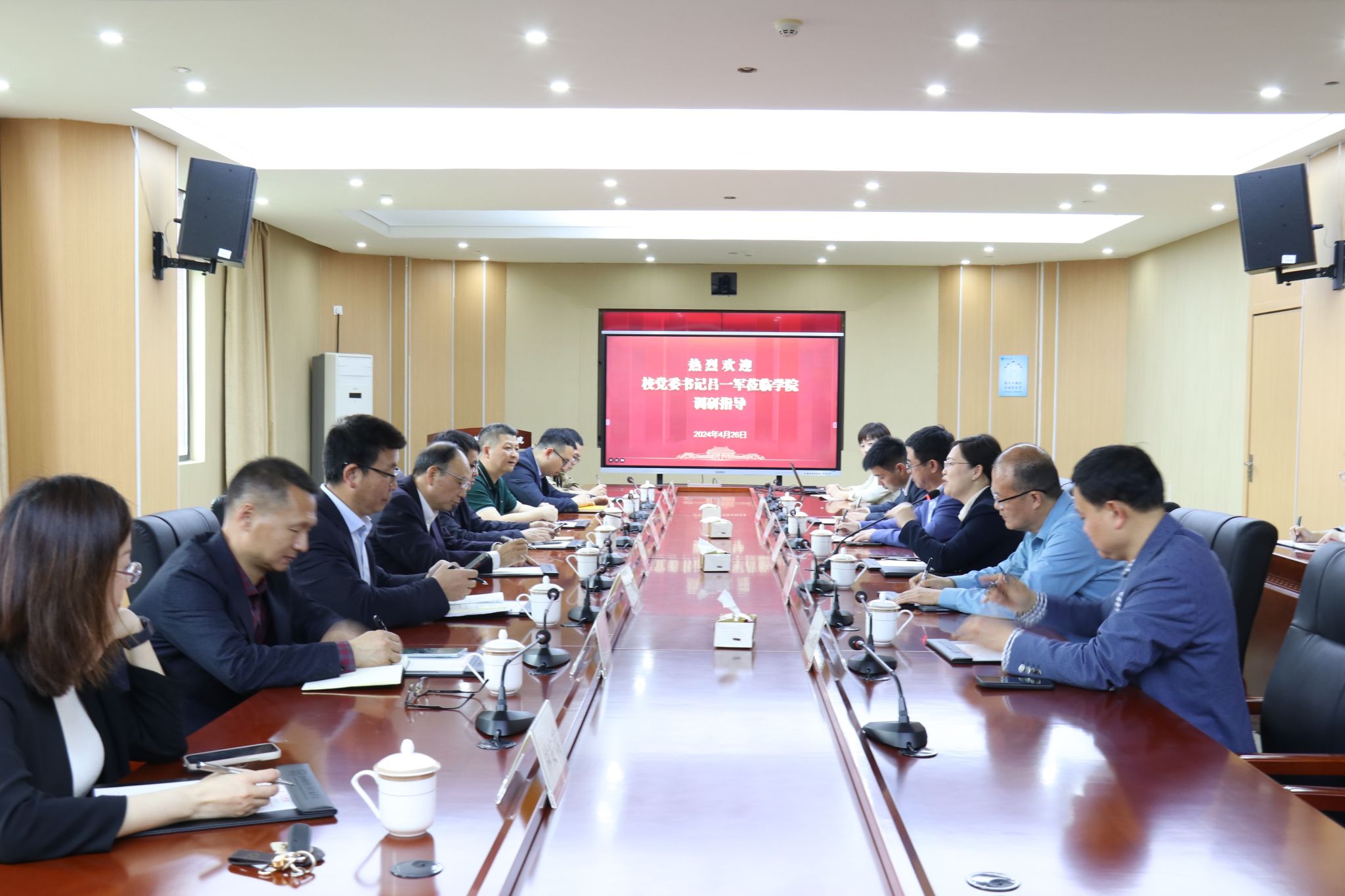 4月26日下午,校党委书记吕一军,办公室、学生处、教务处、发规处、后勤发展处、保卫处等职能部门相关负责人到学院调研指导工作。学院领导班子成员陪同走访并参加座谈。