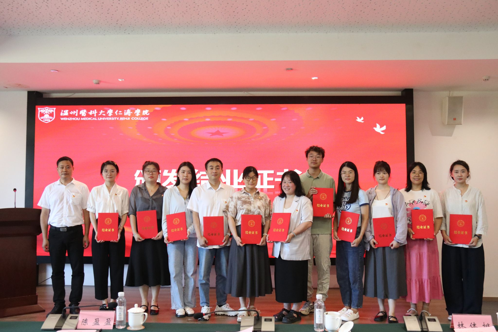 学院纪委书记林体排、副院长戴建春、副院长张树辉为完成本次培训班的科级干部与支部书记颁发结业证书。