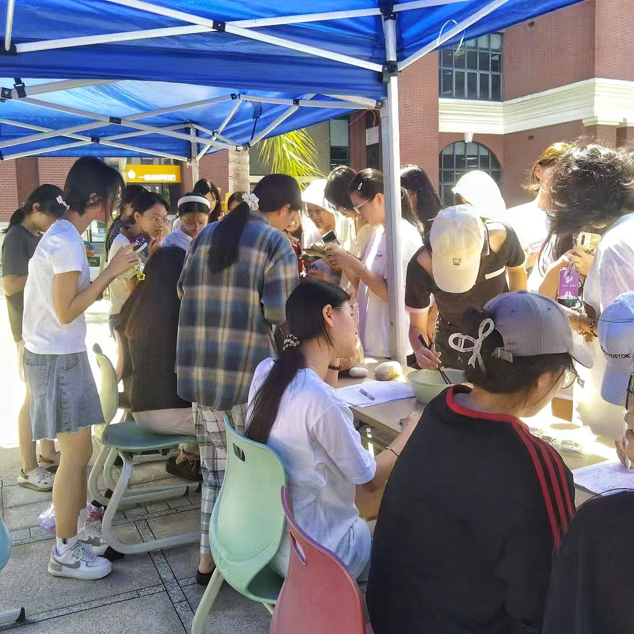 随后,在传统文化体验环节,师生共同亲手制做月饼,从月饼包馅制做到传统文化的思想交流,大家一边探讨一边实践,现场气氛温馨而热烈。师生在实践中体验着传统节日的魅力,更在相互合作中加深了彼此间的情感联系,感受着传统节日文化的独特魅力。此外,本次文化体验还融入飞花令、猜灯谜等中秋特色传统项目,惠源楼广场上“月宫投壶”“掌上明珠”“海底捞月”等趣味游戏同样吸引众多学生参与,学生们还通过精心制作的中秋灯笼装点着夜色下的滨海校区,为校园增添一抹浓厚的节日气氛。