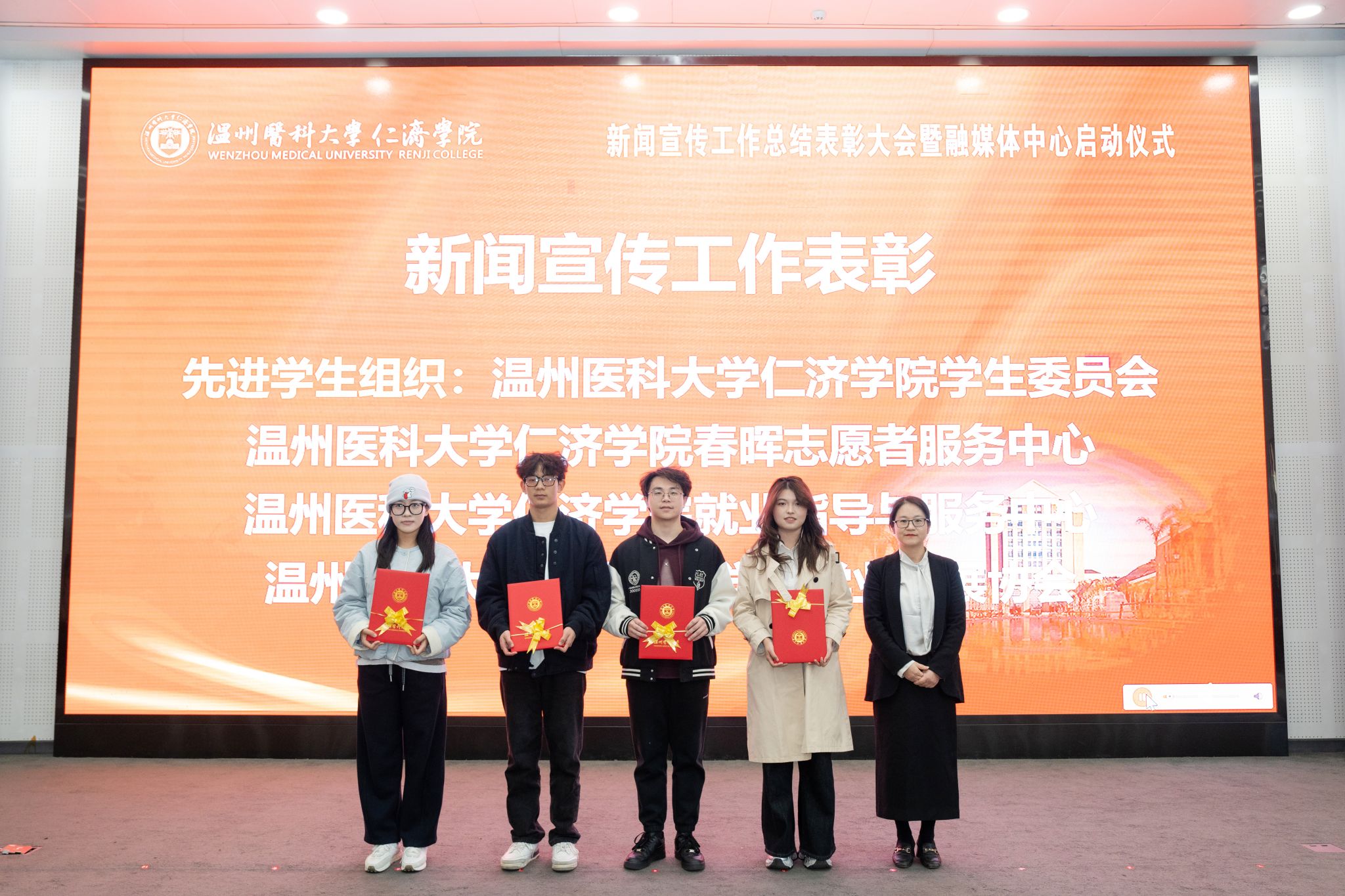 学院党委副书记姜旭英首先为过去一年中积极投身于学院的新闻宣传工作,为讲好仁济故事、发好青年声音作出重要贡献的新闻宣传工作先进个人(学生代表和教师代表)、先进学生组织以及先进集体进行颁奖。