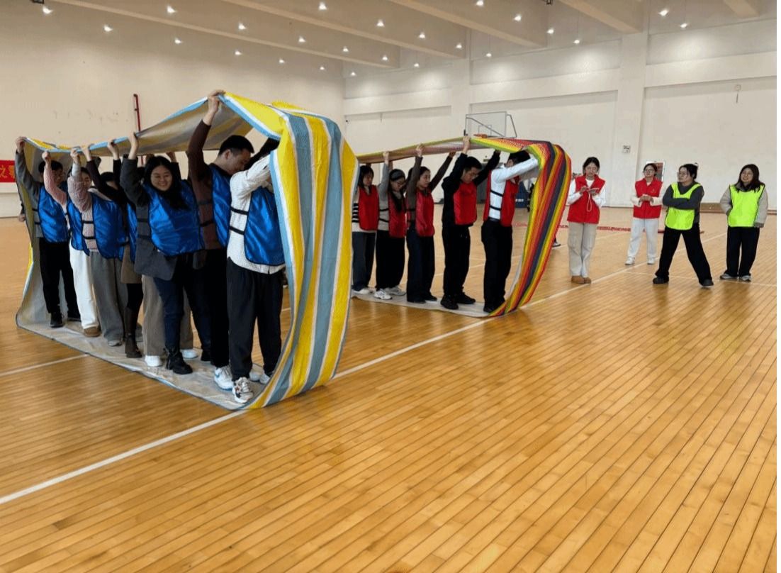本次活动共设置了“无敌风火轮”、“一投即中”、“力拔山兮”、“踏步向前”等精彩纷呈的游戏,这些项目既考验了个人技巧,也体现了团队合作的重要性。比赛采取小组积分制,按照积分高低进入最终“零食大作战”环节。来自学院各职能部门的60余名教职工分别组成了5个小队参加比赛。教职工们秉承“友谊第一、比赛第二”的原则,相互激励、相互竞争,凭借团队力量、默契度与速度角逐高低。比赛中,参赛者们展现出了顽强拼搏的精神,将竞技与娱乐完美结合,现场气氛热烈,加油声、欢笑声此起彼伏,成为校园里一道温暖又活力满满的风景线。