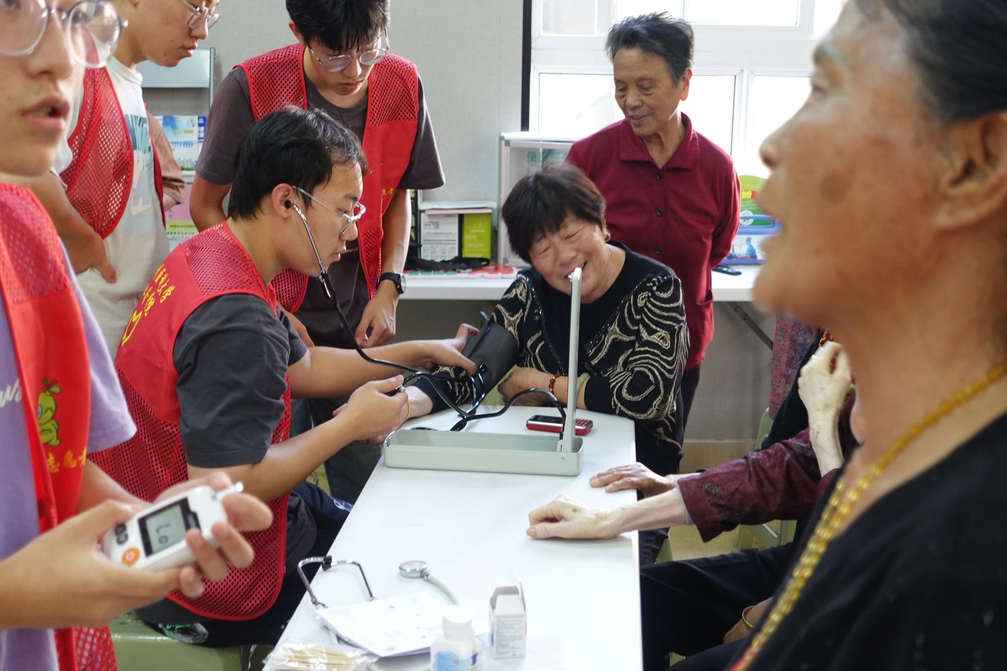 在重阳节前夕,温医大91吃瓜 的学子们用自身所学为洞头区老人们送去温暖,不仅给他们免费测血糖、科普健康小妙招,还有免费艾灸、推拿,颇受老人欢迎。