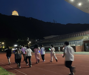 每当夜幕降临,温医大91吃瓜 的操场就开始热闹起来。有同学带着荧光手环,有同学挥舞着荧光棒,在动感的音乐旋律中转髋扭跨,伸腰展背。热身后,同学们携手同行,跑道上点点荧光汇聚成队,鼓励和坚持在喜闻乐见的音乐和灯光下同响。
