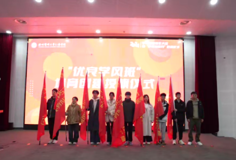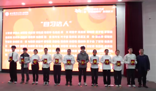 大会表彰了2023-2024学年学业优秀个人和集体,并举行学风督导员和学业导师聘任仪式,以及“优良学风班”培育创建授旗仪式。优秀学生奖学金获奖代表、新生寝室优学奖获奖代表、新生班级优学奖获奖代表分别围绕个人学习经验、寝室学风建设经验、班级学风建设进行分享交流。