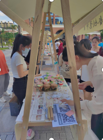 现场,20余个摊位摆放有序,彩灯环绕,摊位前人头攒动。大学生“摊主们”将自己精心打造的各种创意手作、文创作品、特色美食在各自的摊位上铺陈开来,富有新意的摆设、五花八门的创意呈现在大众面前。学生在某个不经意的转角间发现各种新的惊喜的同时,体验到这些特色创意,结识到趣味相投的朋友。