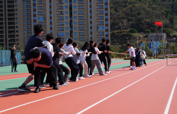 实践环节设置趣味运动会、荧光夜跑两大板块。运动会包含拔河、五人六足等8个集体项目,融合团队协作与体能训练要素;滨海、茶山双校区联动的荧光音乐夜跑采用可穿戴设备进行运动数据采集,建立参与者个人运动档案。