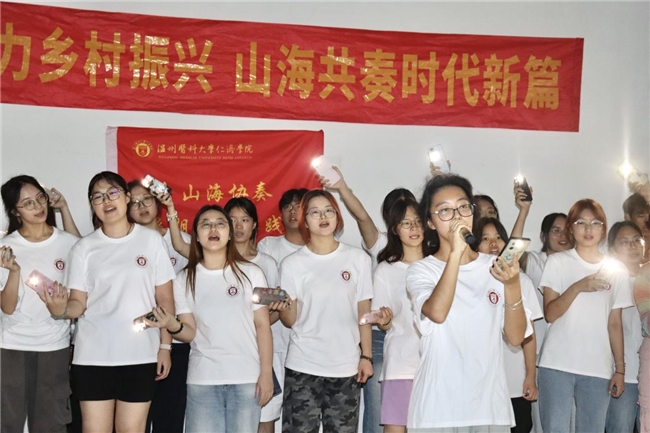 实践期间,台风“丹娜丝”侵袭洞头。实践团所驻大门新城实验学校成为避灾安置点,接收了133名转移群众。面对突发状况,38名实践队员迅速行动,化身全能志愿者:协助分发物资、疏导情绪;发挥专业所长,开设临时健康角提供健康服务;更在风雨交加之夜,克服困难,用手机灯光搭建星光舞台,为安置群众献上了一场充满温情的即兴演唱会。《小幸运》《晴天》等熟悉的旋律驱散了不安,歌声与关怀焐热了133颗悬着的心,生动展现了新时代青年在关键时刻的责任与担当。