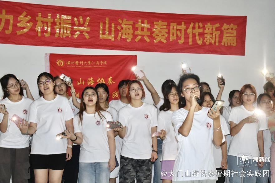实践期间,台风“丹娜丝”侵袭洞头。实践团所驻大门新城实验学校成为避灾安置点,接收了133名转移群众。面对突发状况,38名实践队员迅速行动,化身全能志愿者:协助分发物资、疏导情绪;发挥专业所长,开设临时健康角提供健康服务;更在风雨交加之夜,克服困难,用手机灯光搭建星光舞台,为安置群众献上了一场充满温情的即兴演唱会。《小幸运》《晴天》等熟悉的旋律驱散了不安,歌声与关怀焐热了133颗悬着的心,生动展现了新时代青年在关键时刻的责任与担当。