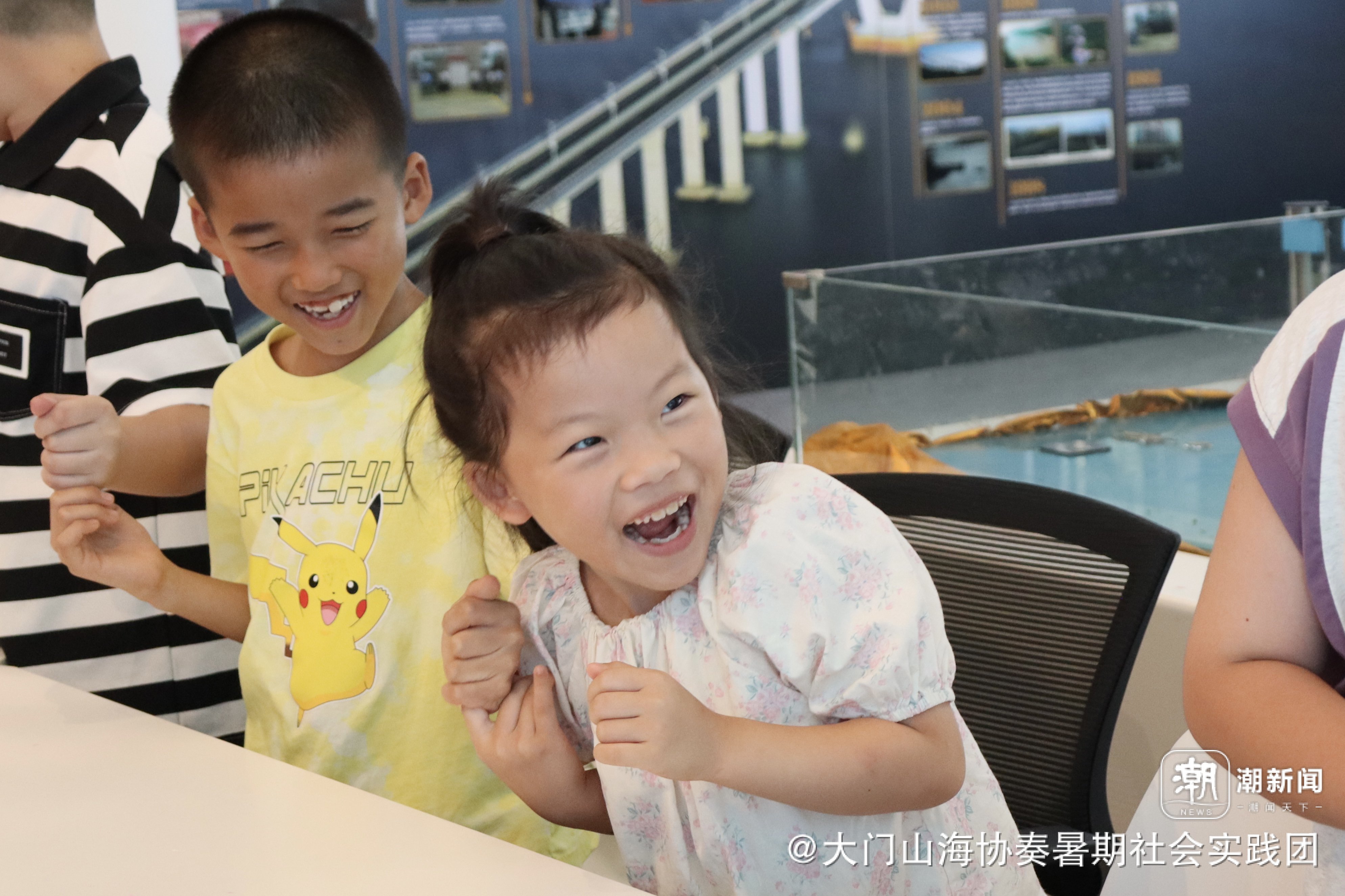 “兰心育苗”暑期夏令营突破传统教育模式,推行“玩中学,做中悟”的实践教育模式,使抽象的概念可感化,便于儿童理解。“弹性超人”课堂通过抓手指游戏、菜籽油榨取等互动环节,在趣味中具象化压力,培养儿童心理韧性;“星火使者”道德课堂以当地模范人物王珏事迹为蓝本,采用新闻发布会情景模拟形式,让德育教育可感可知;“对话超能”心理课堂借助一张纸的变化,让孩子们亲身体验清晰表达与非暴力沟通的重要性。这种沉浸式教学既丰富了海岛教育资源,更实现了知识传授与价值引领的有机统一。