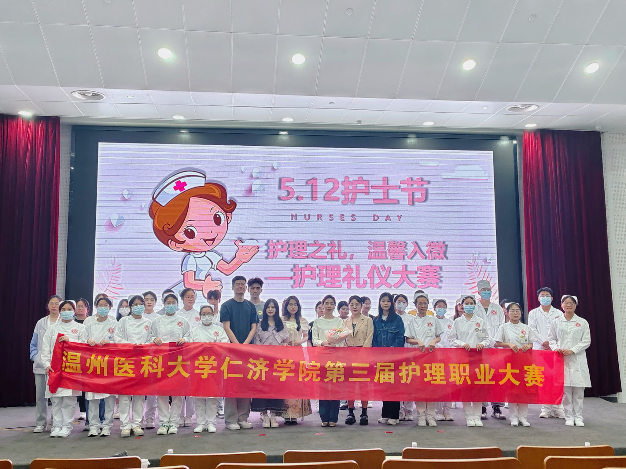 “我宣誓,以真心、爱心、责任心对待每一位病人,永葆白衣天使的圣洁。”在蜡烛宣誓环节,学生们手持蜡烛,庄严宣誓,表达对护理事业的忠诚和热爱,更加坚定为患者服务的决心。在活动结尾,同学们为本次比赛特邀嘉宾苏素素惊喜献花,送上节日祝福,一堂生动的职业节日课堂,在致敬最美白衣天使中落下帷幕。