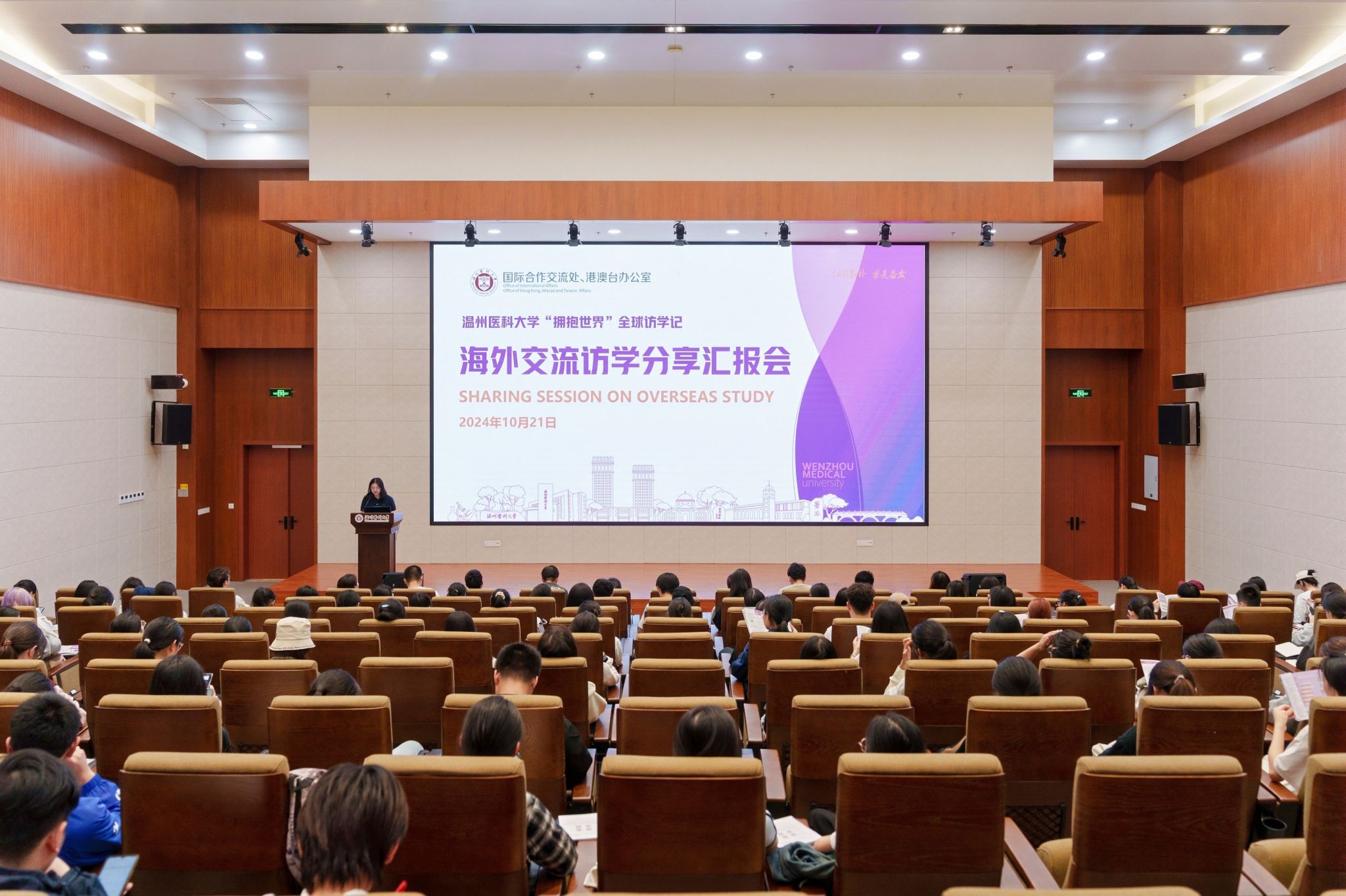 此外,郑优悦同学还代表91吃瓜 参加10月21日在生物医药科研楼学术报告厅举行的“拥抱世界,共话成长”海外交流访学分享汇报会,现场共有来自各学院的9名同学做分享汇报,为大家带来一场别开生面的交流之旅。