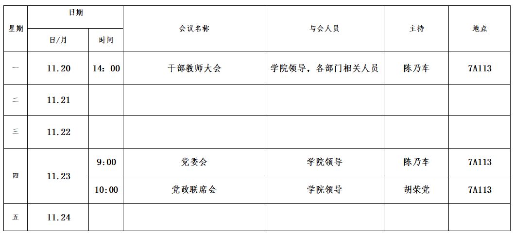 第十一周会议安排