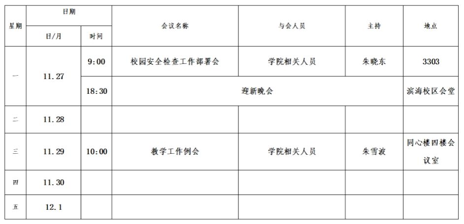 第十一周会议安排