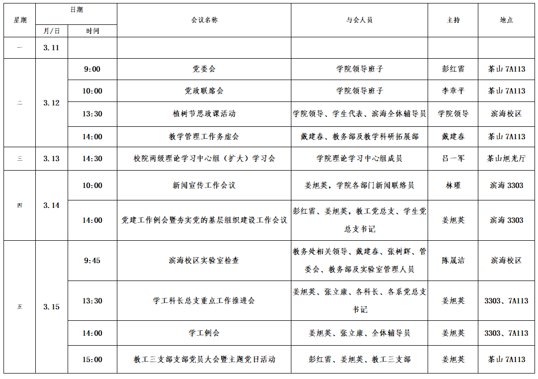 第三周会议安排