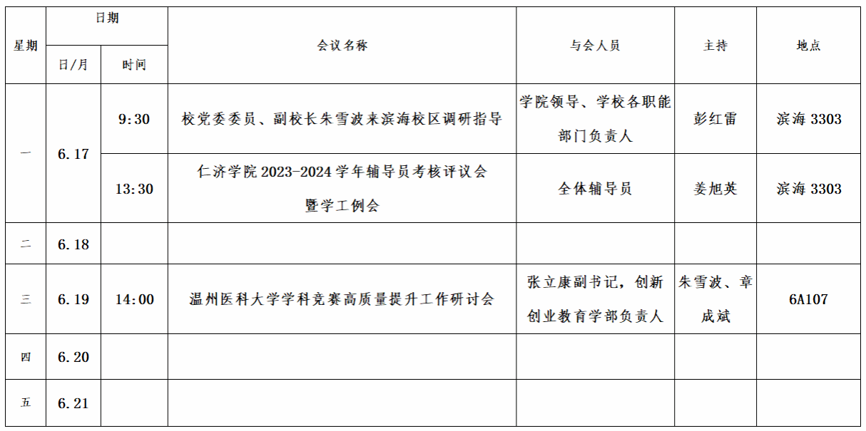 第十七周会议安排