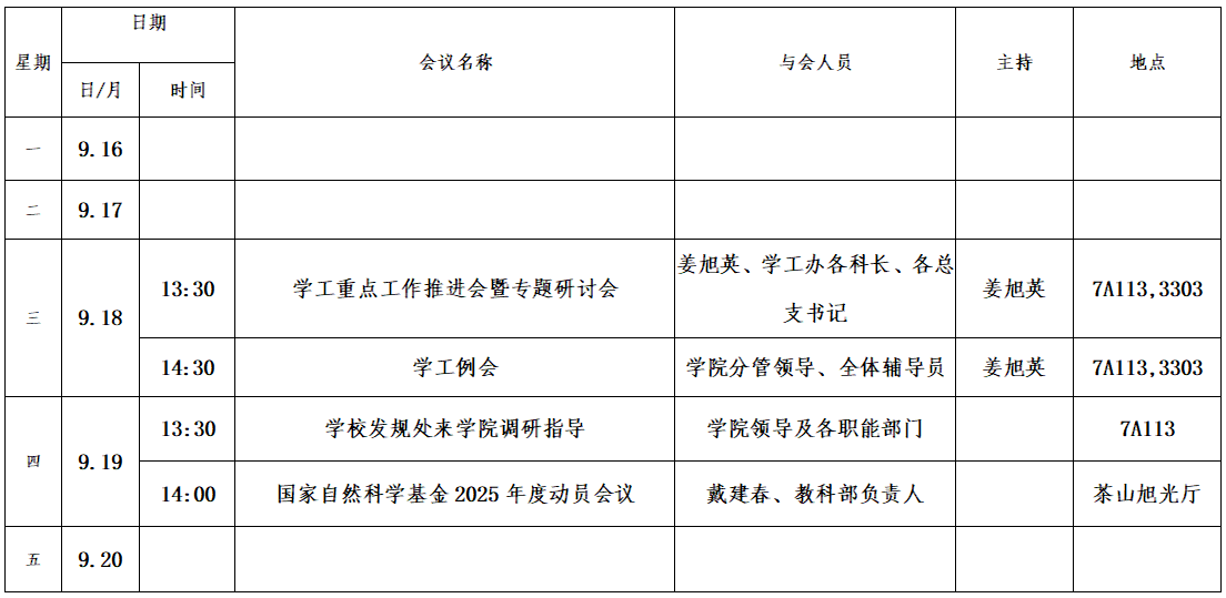 第四周会议安排