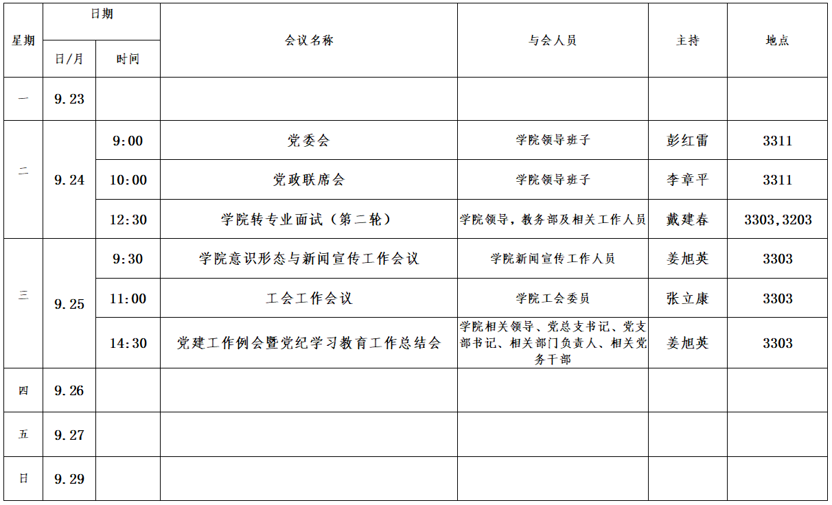 第三周会议安排