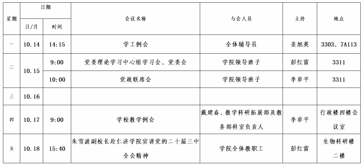 第六周会议安排
