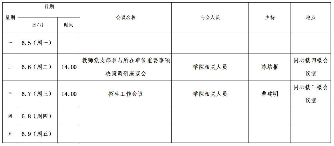 第十六周会议安排