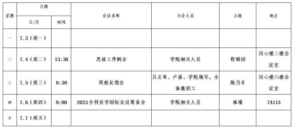 第二十一周会议安排