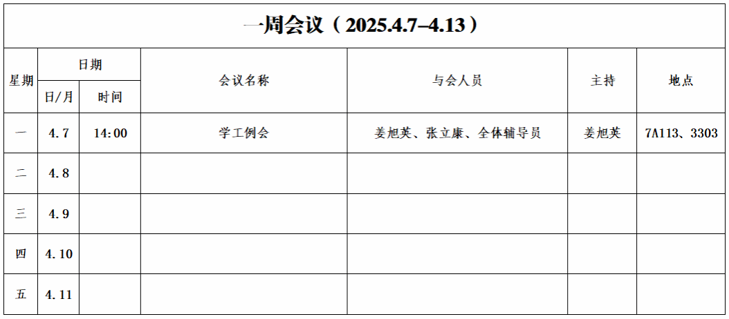 第七周会议安排