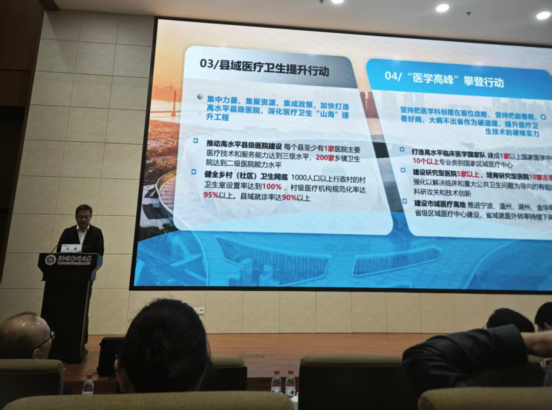 浙江省医疗服务管理评价中心党委委员、副主任王雷,绍兴市上虞区卫生健康局党委副书记、副局长郑柏泉,东阳市卫生健康局党委委员叶帅,玉环市卫健局组织员、人事科教科科长黄蕾茜等医疗系统领导和专家,以及余姚市妇幼保健院(余姚市第二人民医院)党委副书记、院长王建中,淳安县第一人民医院党委委员、副院长朱太平等医院领导全面介绍了卫生健康事业的发展现状、人才规划及地方引才政策,帮助毕业生深入了解行业前景与就业机遇。