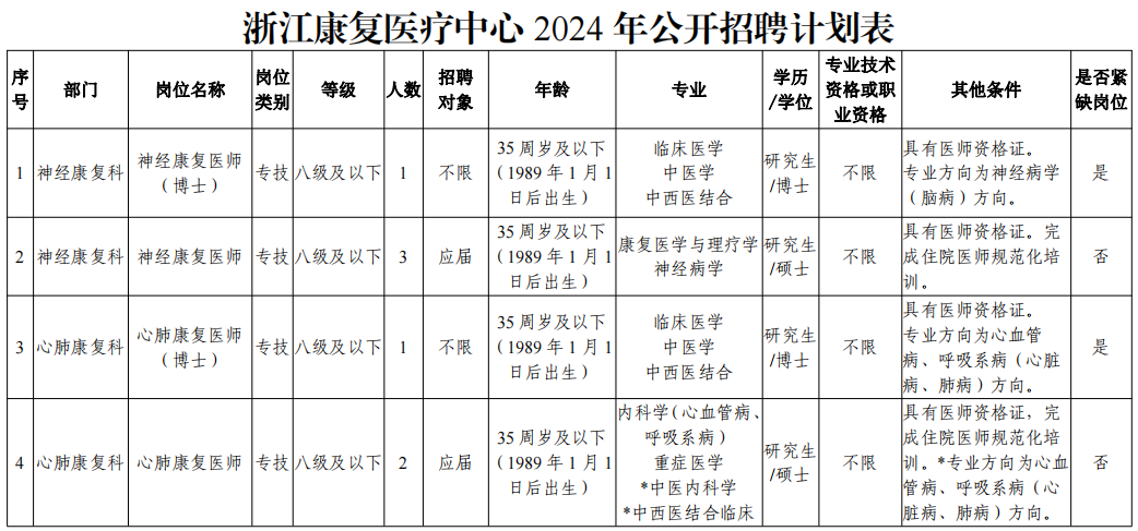 浙江康复医疗中心(浙江中医药大学附属康复医院)2024年公开招聘公告