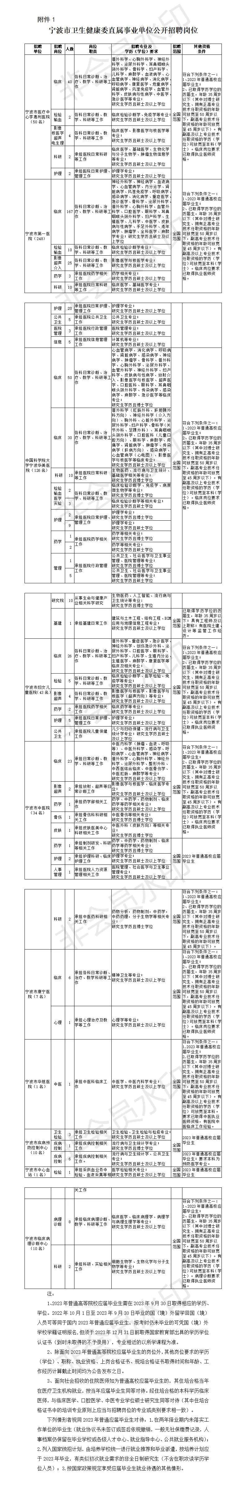 根据《宁波市事业单位公开招聘工作人员实施办法》和《宁波市卫生局直属医疗卫生单位公开招聘工作人员实施细则》的有关规定,宁波市卫生健康委直属事业单位决定面向全国公开招聘高层次人才530名。现就有关事项公告如下: