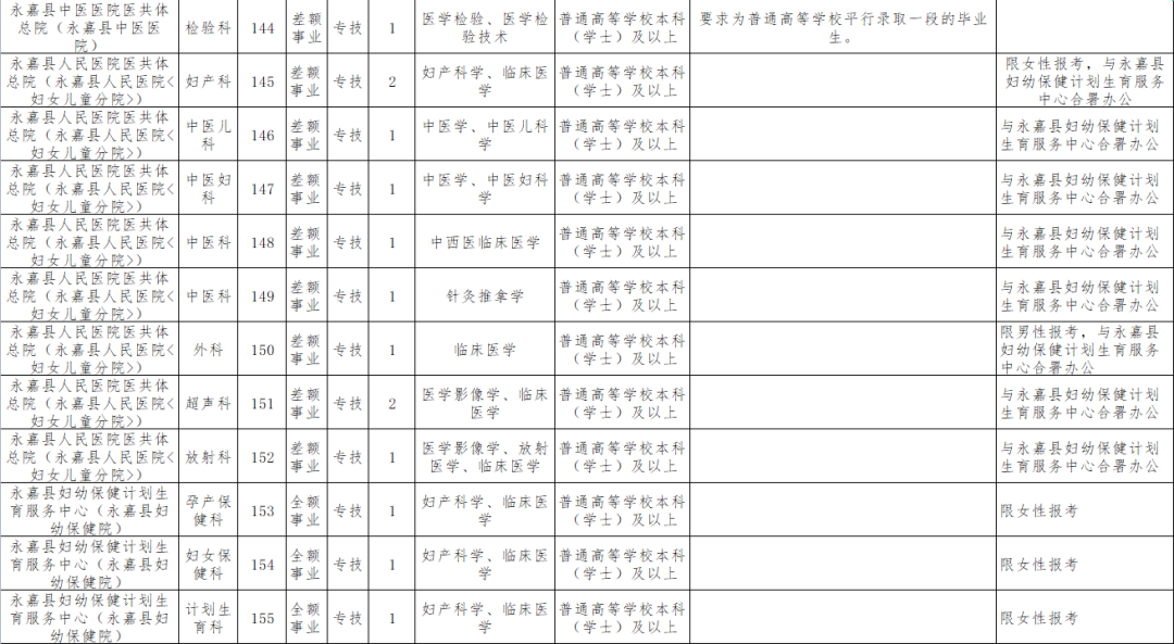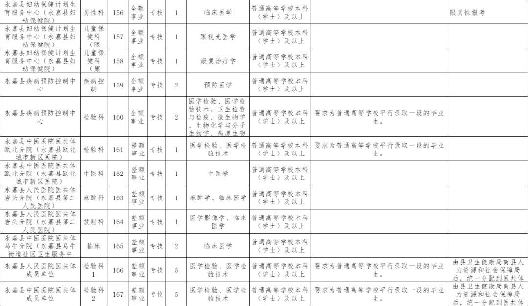 (二)永嘉县人民医院医共体总院(永嘉县人民医院)、永嘉县中医医院医共体总院(永嘉县中医医院)招聘使用事业编制报备员额。