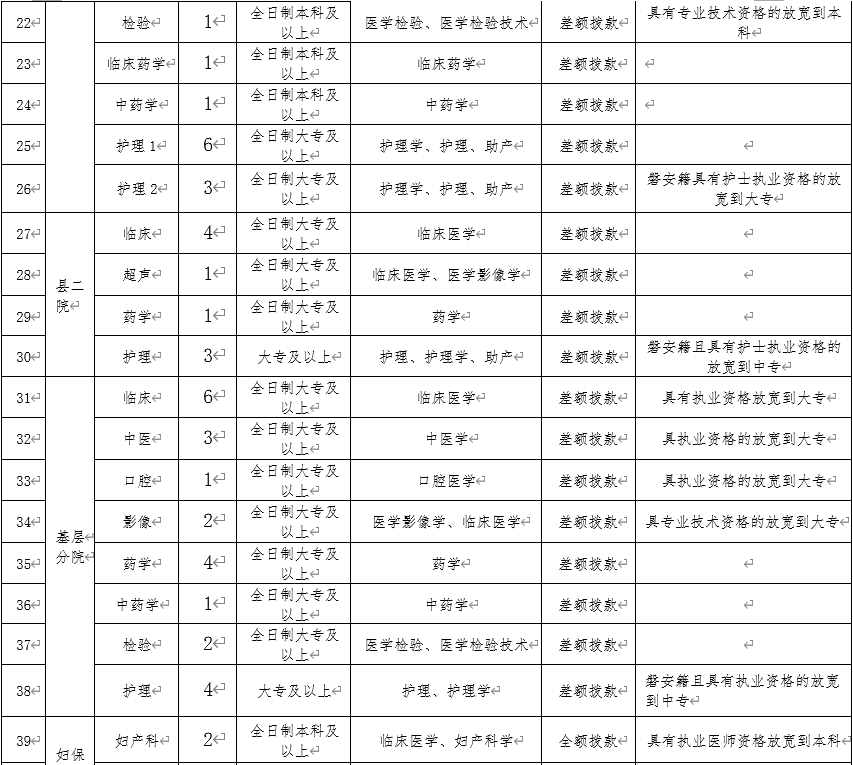 4.户籍:面向全省招聘,其中基层护理岗位面向本县;临床医学等紧缺专业及中医专业的户籍放宽到全国。