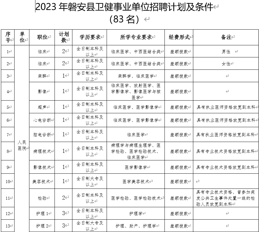 共同富裕·医护招聘|招聘83人|2023年磐安县卫健事业单位公开招聘公告发表时间:2023年04月10日 22:07 流览量:次 作者: 分享到: