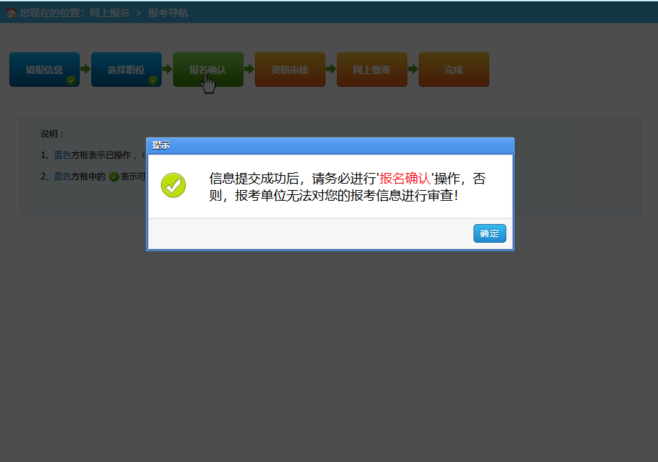 6.报考人员报名信息提交后,请务必进行“报名确认”操作,否则,报考单位无法进行资格审查。