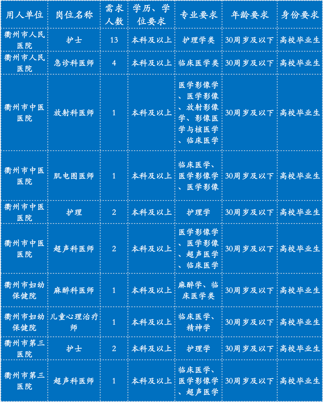根据衢州市直卫生健康单位需要,拟招聘2023年优秀应届毕业生28名。