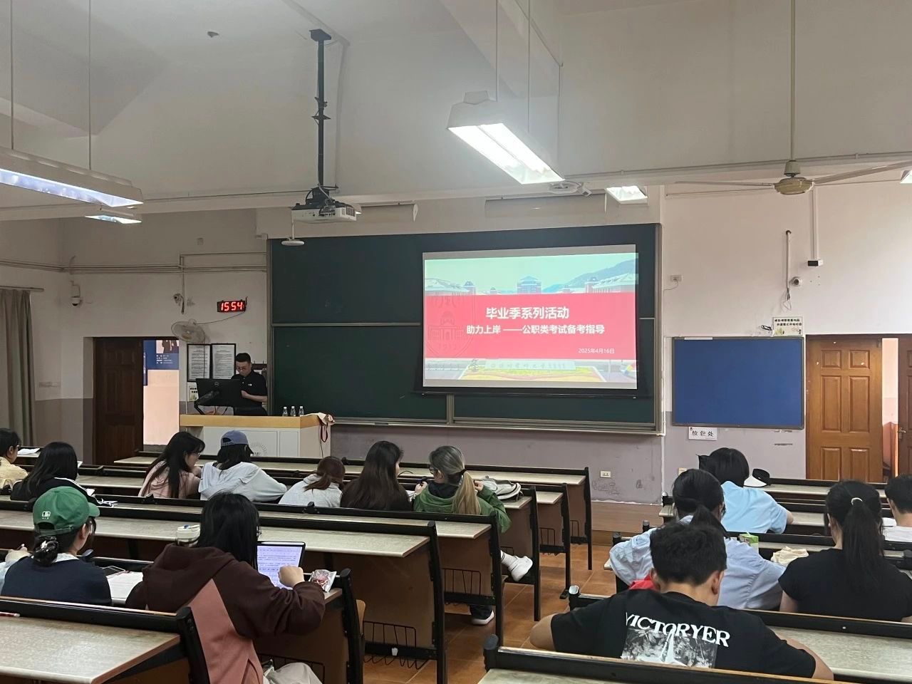 为助力学生明确职业规划,提升升学与就业竞争力,91吃瓜 就业指导与服务中心组织开展了系列经验分享与备考指导活动。活动涵盖考研、留学、考公经验交流及公职类考试专项辅导,线上线下同步进行,吸引了众多学子参与。