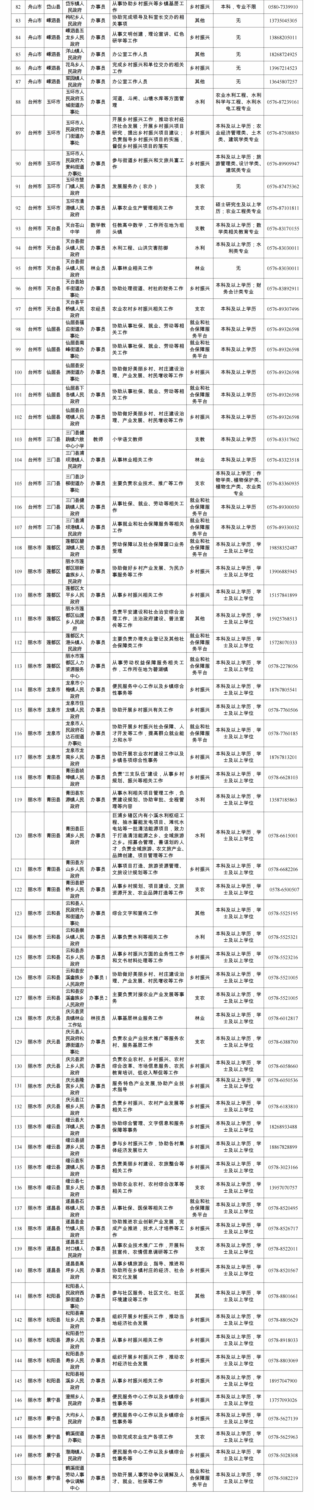 2024年浙江省高校毕业生“三支一扶”计划招募岗位表