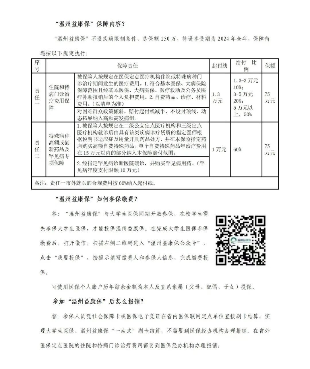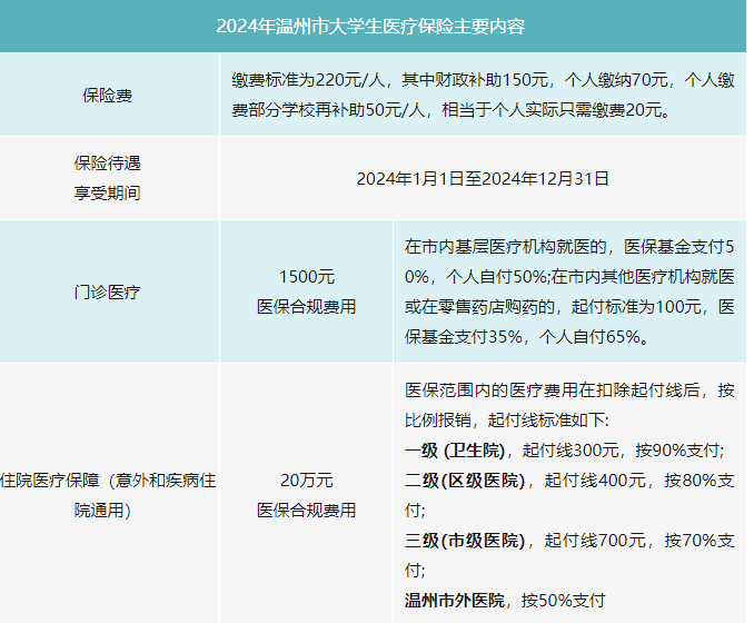 一、2024年温州市大学生医疗保险主要内容