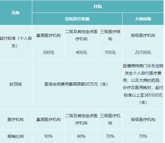 答:一个医保年度内,参保人员发生的符合基本医疗保险规定范围的住院医疗费用(含特殊病种门诊,下同),按以下规定执行: