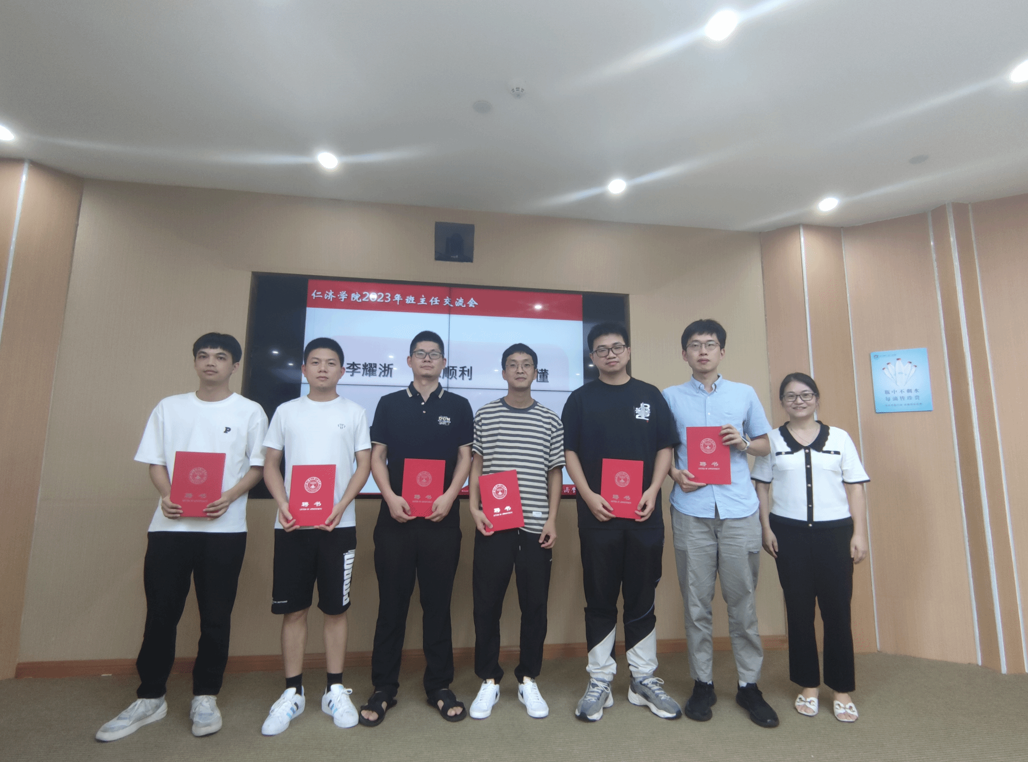 会上,学工办主任季子正就2023年级新生基本情况、班主任的工作内容和具体要求进行了介绍,并重点就做好学生学风建设工作和心理健康教育交流了经验。教务部主任钱成敏对学院学生学籍管理实施细则等规定进行了详细解读,帮助各位新生班主任熟悉了解了学院转专业、毕业、学位授予等相关事宜的政策要求。学院教师陈鹏从自身的班主任工作经历出发,分享了自己担任班主任的初心和体会。会议现场还举行了新生班主任聘任仪式,姜旭英与会班主任颁发了聘书。