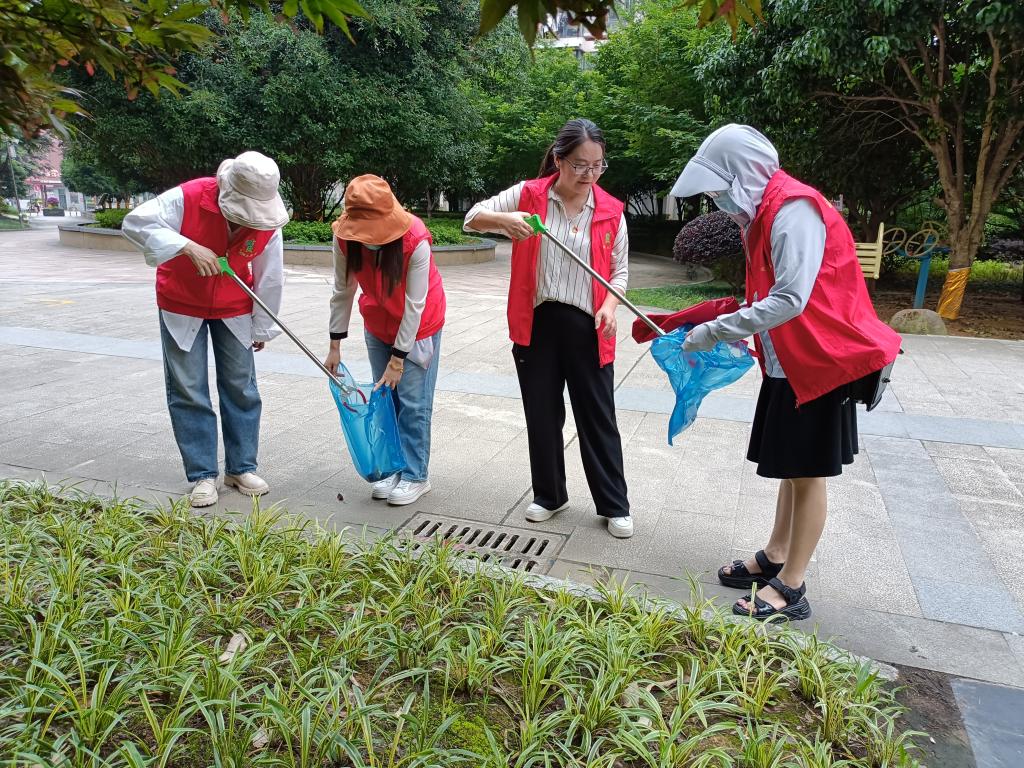 党支部成员参与志愿服务活动,积极助力全国文明城市创建。志愿者在校园地下车库出入口、主要交通干道开展文明交通督导志愿活动,在交通早晚高峰引导学生骑电动车时戴头盔,不载人,文明出行。志愿者们还深入到高教博园社区开展环境卫生整治志愿服务活动,承担起小区清洁美化工作。他们身着志愿者马甲,使用垃圾钳、垃圾袋等工具对各自划分的公共区域进行卫生清洁工作,全面清理路面和绿化带的垃圾,整理摆放停放无序的非机动车辆等,为小区居民打造了一个干净整洁的环境,得到了居民们的一致好评。
