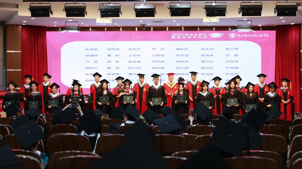 “精彩的大学时光,你们秉承‘仁心济世 博学致用’的院训,刻苦学习,锐意创新,174人考取研究生,其中38位同学被‘双一流’高校录取,3位同学报名援疆援藏,你们用自己的奋斗绘就最亮丽的青春底色。”学院院长胡荣党深情回顾了本届毕业生与学院共同成长的四五年,他向毕业生表示热烈的祝贺,向辛勤培育他们成长成才的老师和家长表示衷心的感谢,深情寄语毕业生,坚定目标,勇于担当,做有志青年;追求进步,锤炼本领,做有为青年;坚守底线,向上向善,做有德青年,始终以“会当水击三千里”的自信和“我自横刀向天笑”的勇气,开辟人生新的华章。