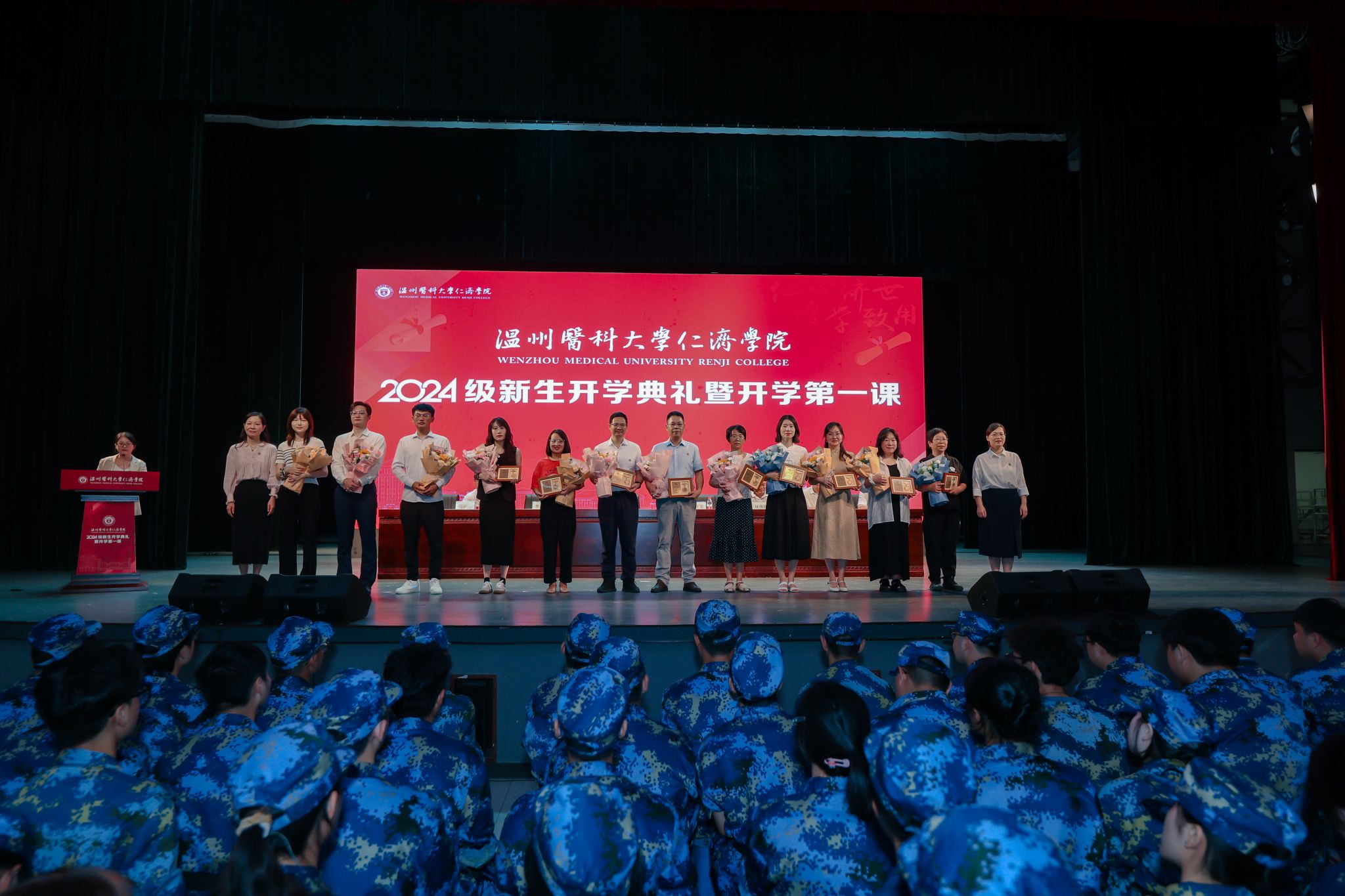 随后,各系新生代表依次上台,校、院领导亲自为他们佩戴上校徽并对新生给予殷切希望和特别祝福。与此同时,为庆祝即将到来的教师节,致敬每一位教书育人岗位上孜孜不倦、躬耕笃行的老师们,校、院领导为新入职教师代表佩戴院徽,为从教10周年、20周年、30周年教师代表颁发特别纪念徽章。