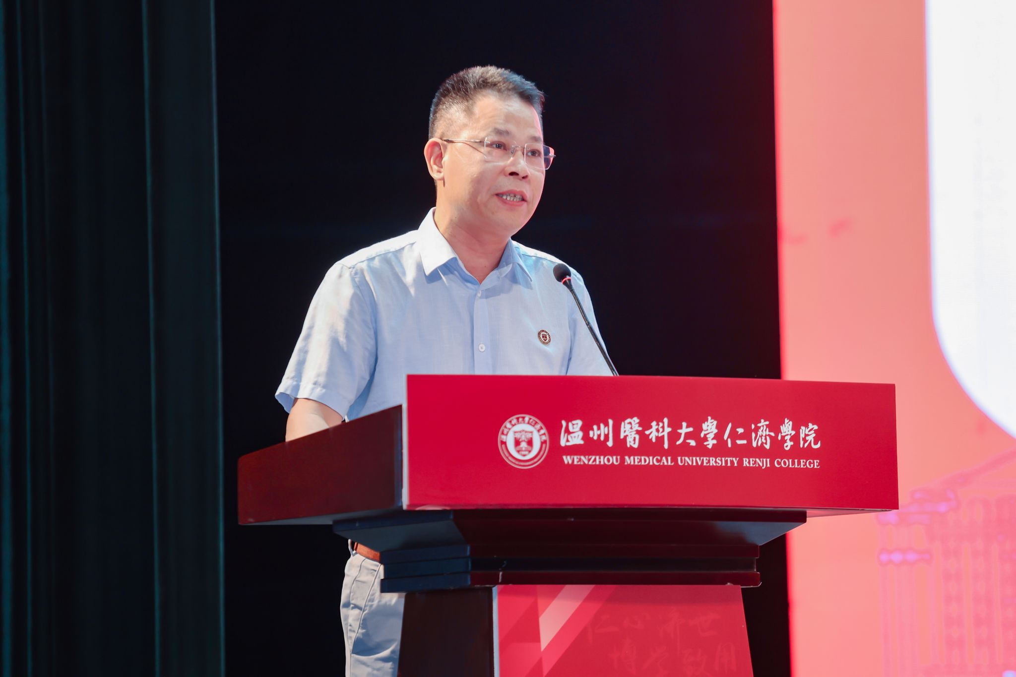 2024级临床专业学生杨涵笑作为新生代表呼吁所有同学要经常自我反思,不断切换学习方式,学会用各种信息丰富自己,沿着医者的足迹,无畏地前行。接着,并带领全体同学庄严宣誓。