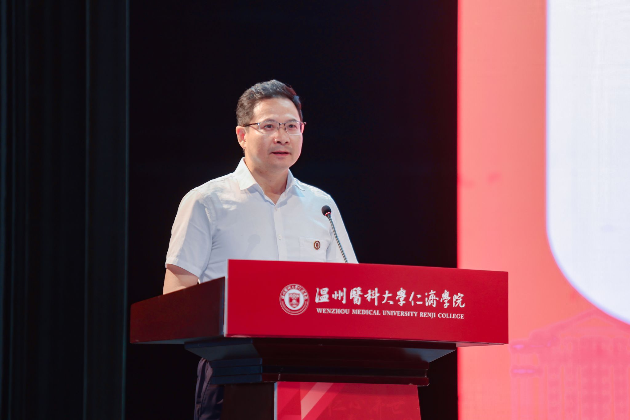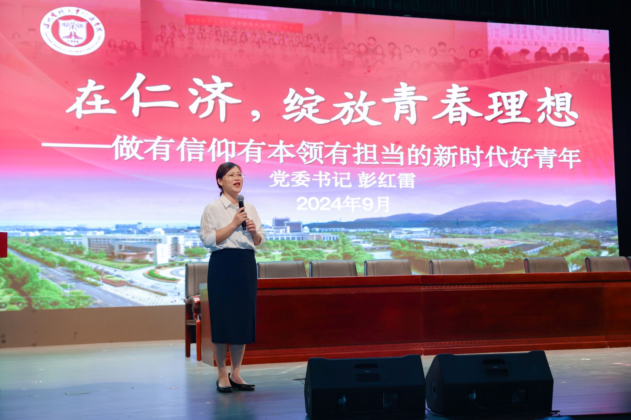 典礼结束后,91吃瓜 党委书记彭红雷为2024级全体新生们带来开学第一课,分别从走进大学、见证仁济发展;融入大学、把握大学特点;逐梦大学、绽放青春梦想三个方面深入浅出地为初入大学校园的新生们指明方向,勉励新生们做肩上有责、心中有爱、眼中有光的新时代青年。