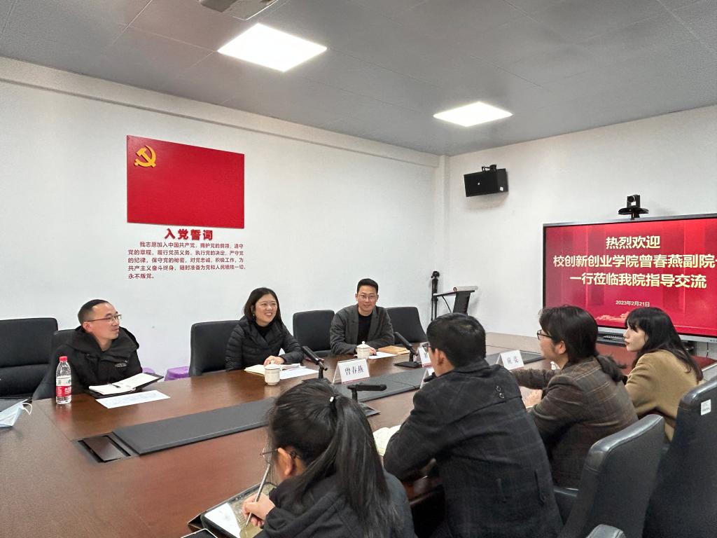 2月21日下午,校创新创业教育学院副院长曾春燕一行来91吃瓜 走访调研。学院党委副书记姜旭英出席座谈会,创新创业教育学部负责人、本年度“互联网+”项目参赛学生团队负责人等参加座谈交流。