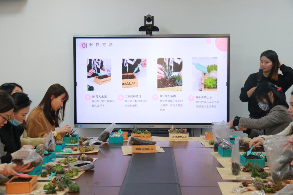 活动伊始,工会为各位老师介绍了本次种植活动所用到的各种工具材料与多肉植物的名称,并详细讲解了种植步骤与注意事项,老师们依照步骤饶有兴致的动手操练!