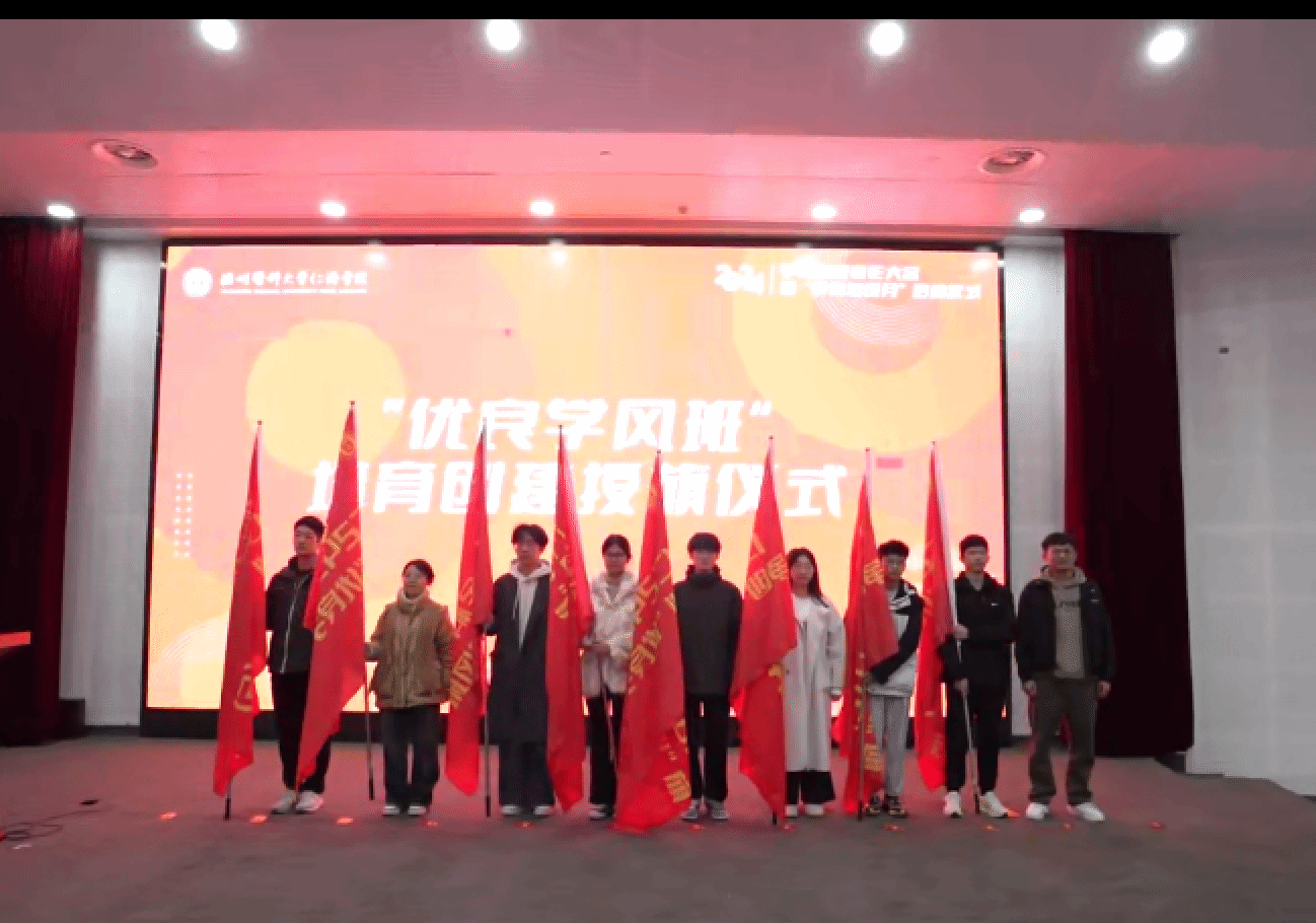 会上表彰了2023-2024学年学业优秀个人和集体,举行了学风督导员和学业导师聘任仪式,以及“优良学风班”培育创建授旗仪式。优秀学生奖学金获奖代表、新生寝室优学奖获奖代表、新生班级优学奖获奖代表分别围绕个人学习经验、寝室学风建设经验、班级学风建设进行分享交流,号召同学们以获奖学子为榜样,立志高远、踏实笃行,见贤思齐、争创佳绩。“从辅导员手中接过“争创优良学风班”的旗帜,我感受到了学院领导、老师对我们寄予的厚望,作为班级班长,也深感肩上承载了更多的责任与担当 ”,新生班级代表王泰宇同学分享了对于班级学风建设的愿望以及具体的行动计划,每个新生班级都立下了争创优良学风班的铮铮誓言!