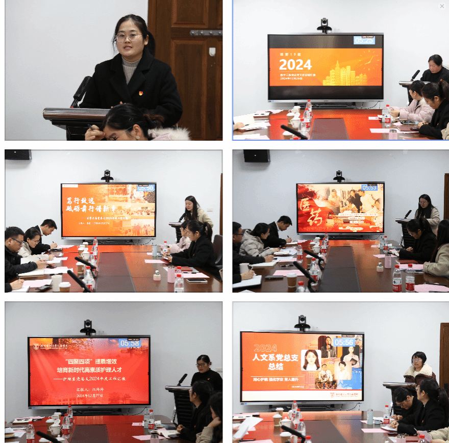 会上,各学生党总支书记围绕系部概况、工作亮点、育人成效以及下一步计划等方面详细汇报了年度工作情况。各学生党总支在思政育人工作的开展方面各有特色,医学一系党总支书记李洁分享了总支通过优化“全科之声”党建品牌项目,重点打造“三维助航工程”,不断提高党员理论素质,创设浸润式育人模式;医学二系党总支书记姚颖颖分享了党支部规范化建设,通过开展“佩党徽、亮身份、作表率”行动,加强对党员、入党积极分子的思想引领;医学三系党总支书记曾莹谈到系内各辅导员以安全“维稳+跟进”、奖助“帮扶+育人”、就业“抓早+做实”为抓手,促党建与业务深度融合;医学技术与药学系党总支书记杨春燕从高水平建强“第一方阵”、高标准抓好“两大课堂”、高质量做实“三项工作”等方面,对总支特色做法进行展示;护理系党总支书记汪玲玲围绕“四聚四项”培育新时代高素质护理人才,讲述护理系党建引领下的工作实效;人文管理与信息工程系党总支书记程婵婵汇报了人文系全体辅导员以提升基础工作质量为牵引,用心护航学生学业发展,不断提升育人亮度。