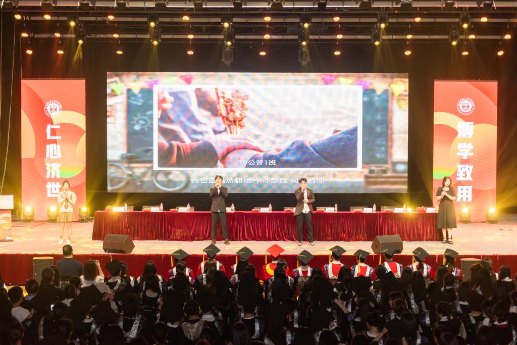 在毕业生代表与学弟、学妹共同演绎的歌曲串烧《沿途》中,典礼拉开序幕。