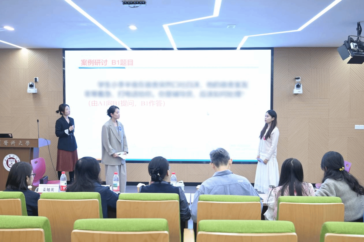 案例研讨环节采用 “两两组队、一问一答” 的形式,围绕学生心理危机干预、学业困难帮扶、人际关系矛盾调解等真实工作场景设计案例,要求每组辅导员在规定时间内完成案例分析、思路梳理,并以问答互动的方式呈现解决方案。比赛现场气氛紧张而热烈,参赛辅导员们精神饱满,认真研讨。比赛过程中,各组合作默契、思路清晰,面对案例中的复杂问题,既能阐明处理原则,又能提出具体可行的措施。